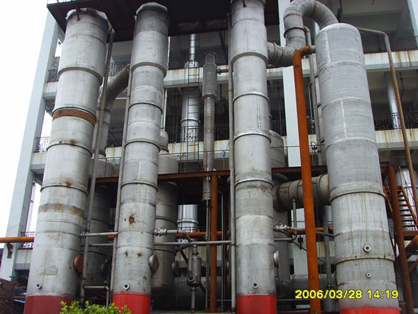 公司還涉足高濃度污水處理行業(yè)。經(jīng)過公司研發(fā)人員的努力,開發(fā)出了YBJXH型強制降膜循環(huán)多效、TVR、MVR蒸發(fā)器用于處理工業(yè)污水,并在聯(lián)邦制藥成都和內(nèi)蒙古公司、印度阿拉濱度、煙臺萬潤精細(xì)化工等應(yīng)用成功。另在2002年山東魯洲集團(tuán)河南公司成功利用管束干燥機(jī)的廢熱制造了18噸廢熱蒸發(fā)器,用至現(xiàn)在。其中聯(lián)邦制藥成都公司選用的污水處理蒸發(fā)器有:50噸一套,35噸2套,12噸一套;聯(lián)邦制藥內(nèi)蒙古公司選用50噸污水處理蒸發(fā)器共3套;液糖車間YBJM30噸四效降膜蒸發(fā)器2套;YBJM20噸四效降膜蒸發(fā)器2套。印度阿拉濱度25噸1套、15噸3套、10噸1套、5噸1套;2.5噸8套等等。
